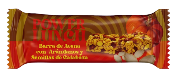 Barra de cereal con avena, arándanos y semillas de calabaza.