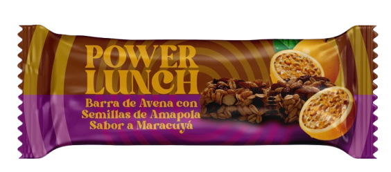 Barra de cereal con avena, semillas de amapola y sabor a maracuyá.